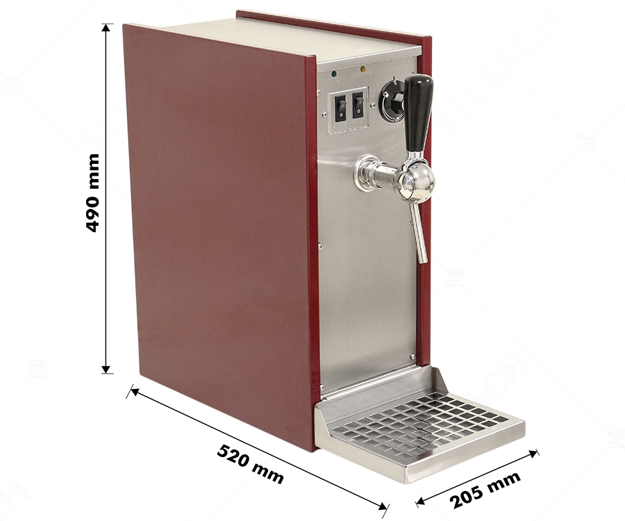 Réglage de la température possible en continu de 7°C à 85°C. L'appareil est équipé d'une pompe électrique intégrée auto-amorçante et silencieuse. Cette pompe permet de puiser dans des récipients non résistants à la pression (par exemple des bidons).